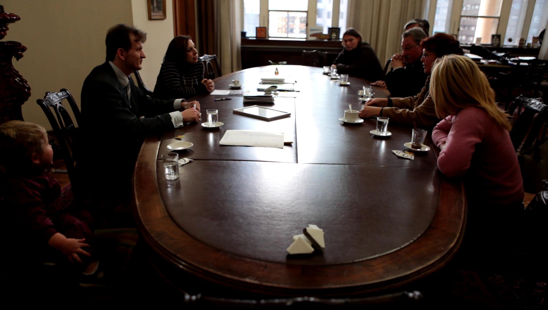 Слева направо: А.Ф. Богородский, Губернатор Монтевидедо Ана Оливера, Ваш покорный слуга, участники совещания